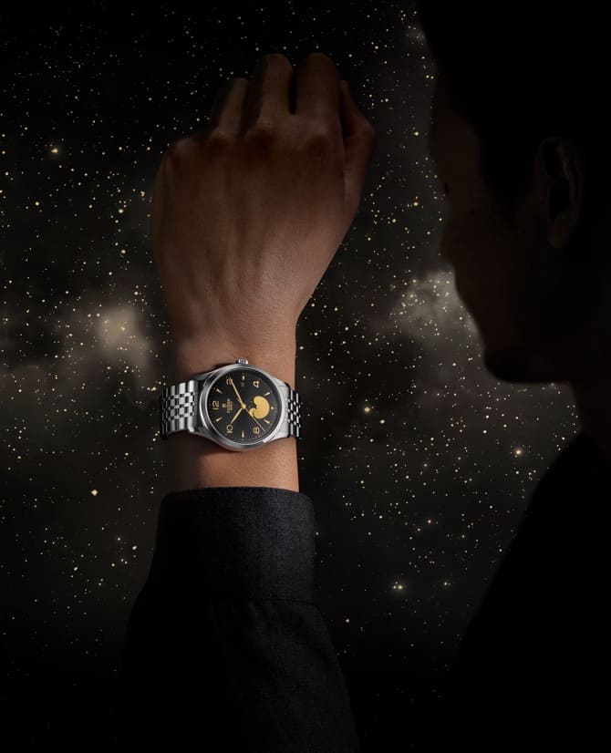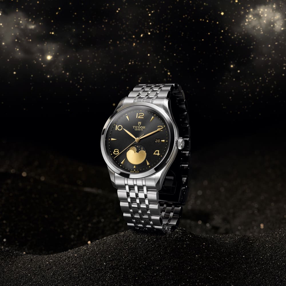 Vorhang auf, Spot an? Wohl eher Licht aus, Mondschein an! Denn mit der 1926 Luna hat TUDOR erstmals innerhalb dieser Kollektion ein Modell mit Mondphasenanzeige im Repertoire. Die Mondphasenanzeige ist eine zugleich poetische wie uhrmacherisch komplexe Komplikation.